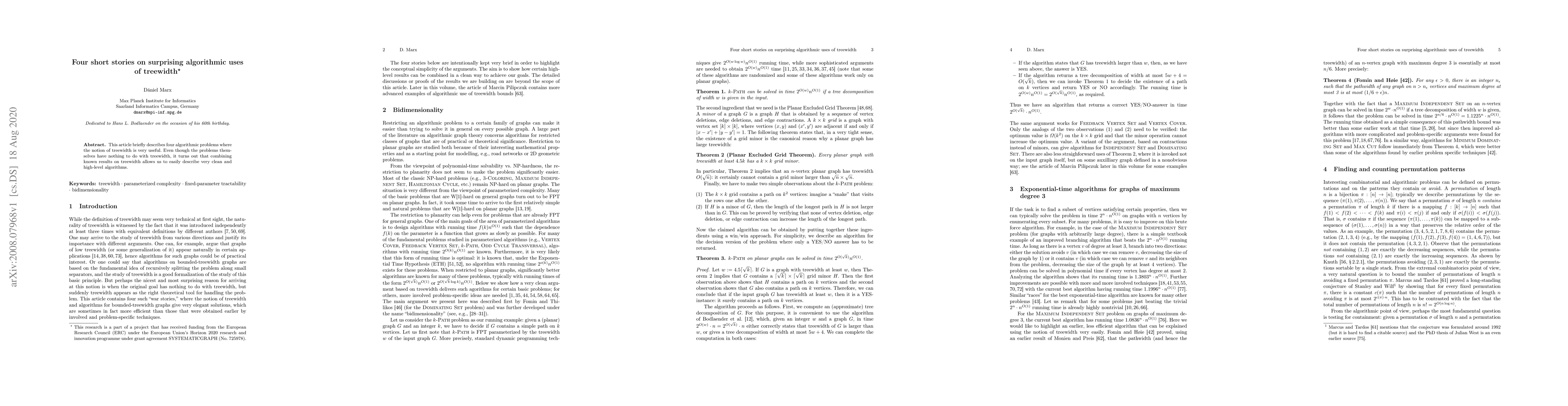 This paper presents four distinct algorithmic problems, initially unrelated to treewidth, where treewidth's application simplifies algorithm descriptions. It showcases the versatility of treewidth in creating efficient, high-level solutions.