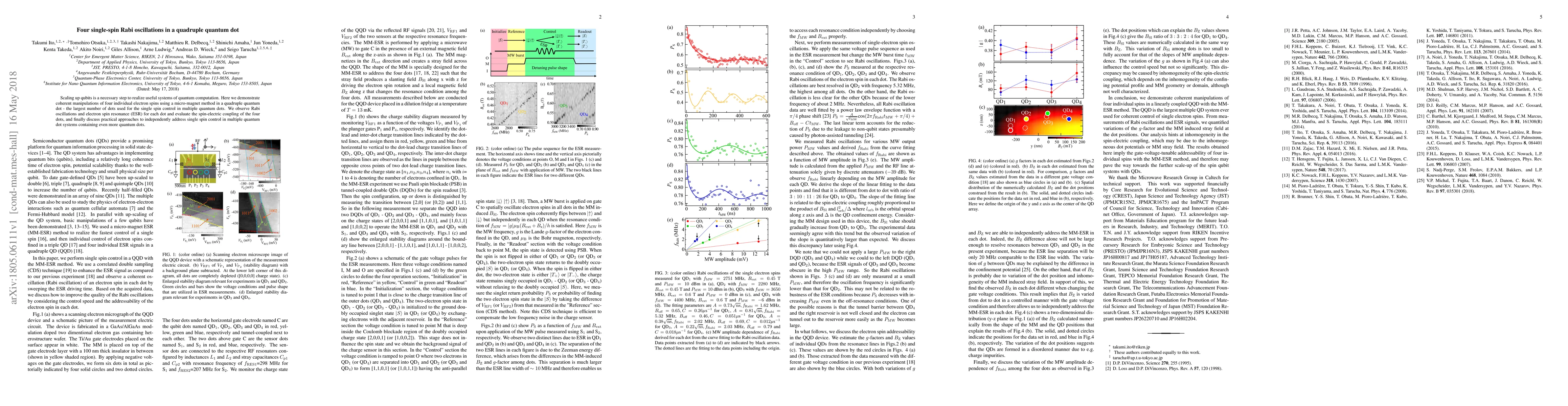 This paper demonstrates coherent manipulation of four individual electron spins in a quadruple quantum dot using a micro-magnet method, observing Rabi oscillations and electron spin resonance for each dot, and discusses strategies for addressing single spin control in larger quantum dot systems.