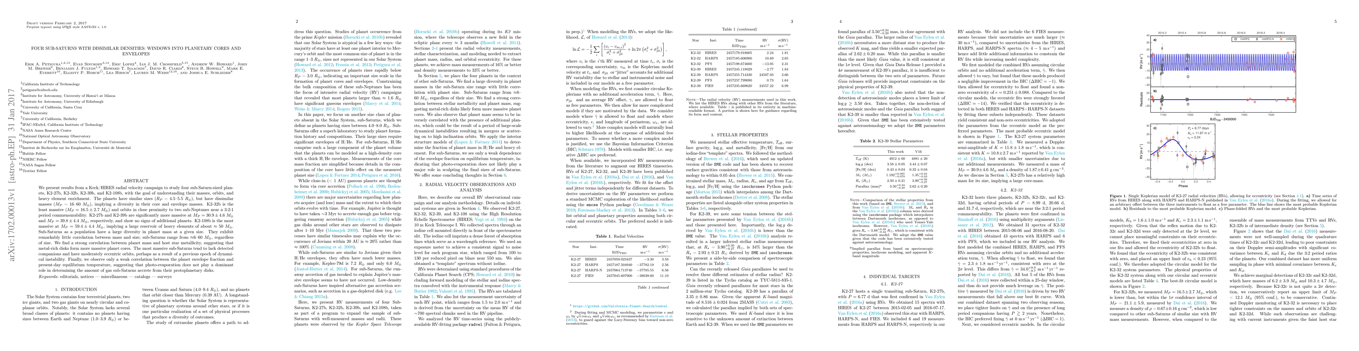 We present results from a Keck/HIRES radial velocity campaign to study four sub-Saturn-sized planets, K2-27b, K2-32b, K2-39b, and K2-108b, with the goal of understanding their masses, orbits, and heavy element enrichment. The planets have similar sizes $(R_P = 4.5-5.5~R_E)$, but have dissimilar masses $(M_P = 16-60~M_E)$, implying a diversity in their core and envelope masses. K2-32b is the least massive $(M_P = 16.5 \pm 2.7~M_E)$ and orbits in close proximity to two sub-Neptunes near a 3:2:1 period commensurability. K2-27b and K2-39b are significantly more massive at $M_P = 30.9 \pm 4.6~M_E$ and $M_P = 39.8 \pm 4.4~M_E$, respectively, and show no signs of additional planets. K2-108b is the most massive at $M_P = 59.4 \pm 4.4~M_E$, implying a large reservoir of heavy elements of about $\approx50~M_E$. Sub-Saturns as a population have a large diversity in planet mass at a given size. They exhibit remarkably little correlation between mass and size; sub-Saturns range from $\approx 6-60~M_E$, regardless of size. We find a strong correlation between planet mass and host star metallicity, suggesting that metal-rich disks form more massive planet cores. The most massive sub-Saturns tend to lack detected companions and have moderately eccentric orbits, perhaps as a result of a previous epoch of dynamical instability. Finally, we observe only a weak correlation between the planet envelope fraction and present-day equilibrium temperature, suggesting that photo-evaporation does not play a dominant role in determining the amount of gas sub-Saturns accrete from their protoplanetary disks.