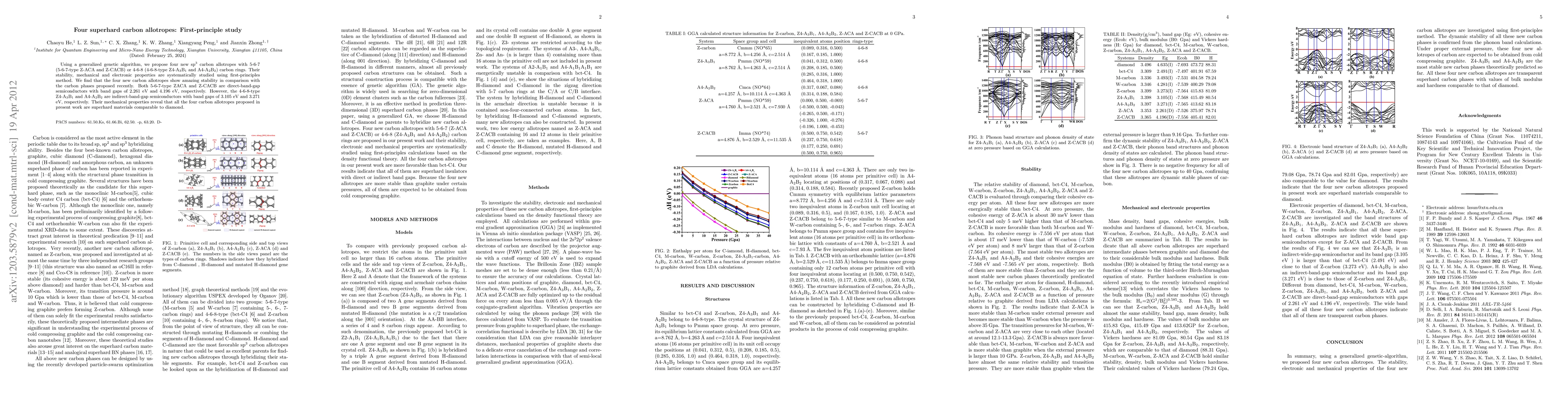 This research proposes four new sp3 carbon allotropes using a genetic algorithm, revealing their exceptional stability and superhard properties akin to diamond. The allotropes, characterized by 5-6-7 and 4-6-8 carbon rings, exhibit distinct electronic behaviors, with ZACA and Z-CACB being direct-band-gap semiconductors and Z4-A3B1 and A4-A2B2 indirect-band-gap semiconductors.