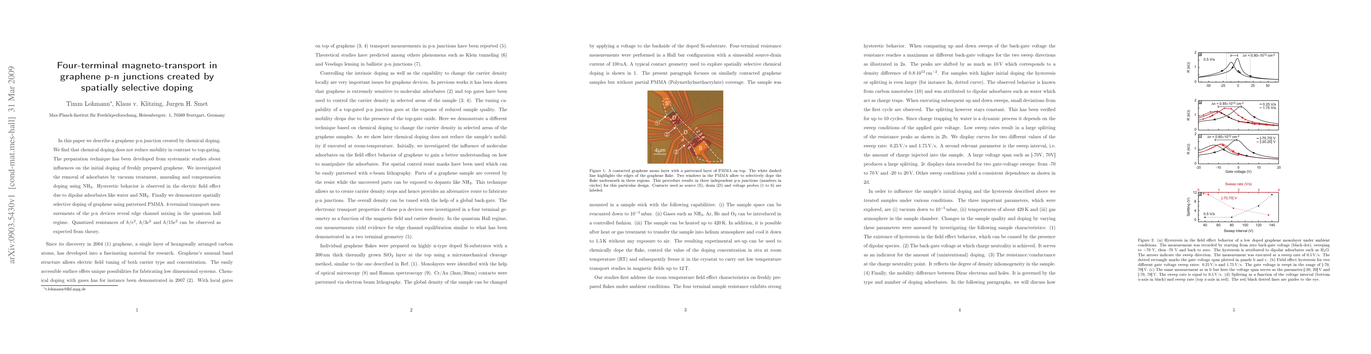 This paper investigates graphene p-n junctions formed via chemical doping, finding that this method maintains high mobility unlike top-gating. The study also demonstrates spatially selective doping using patterned PMMA, revealing edge channel mixing and quantized resistances in 4-terminal transport measurements.