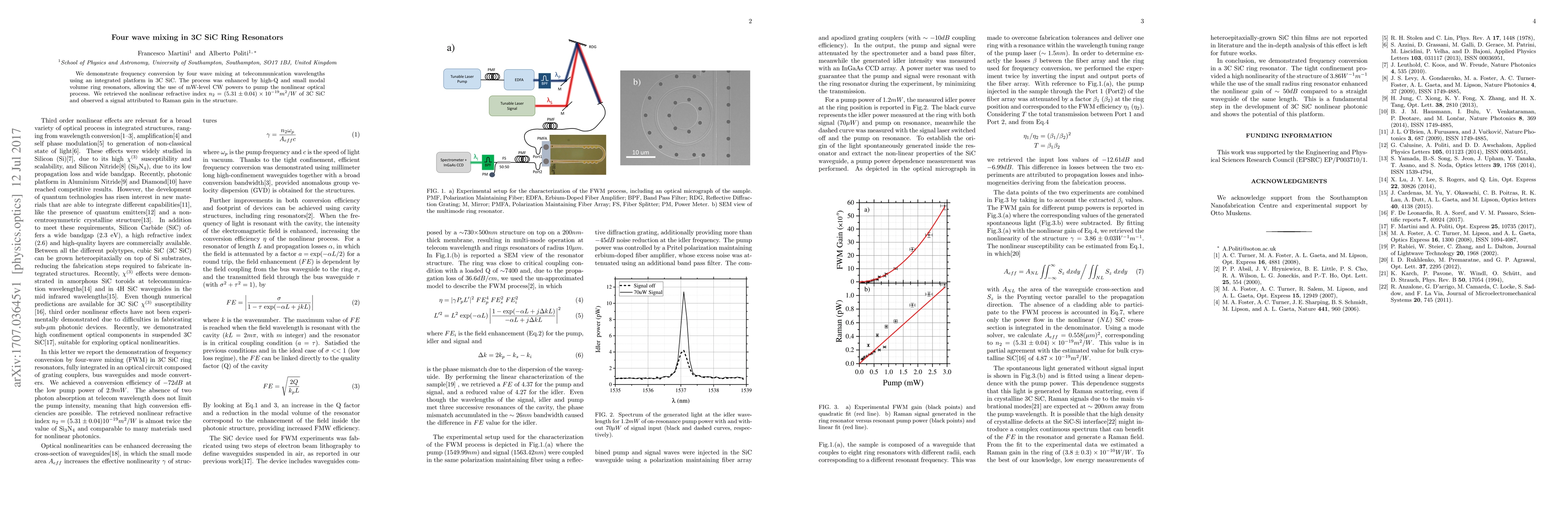 Researchers successfully demonstrated four-wave mixing in 3C SiC ring resonators, achieving frequency conversion at telecommunication wavelengths using low CW powers, and retrieved the nonlinear refractive index of 3C SiC.