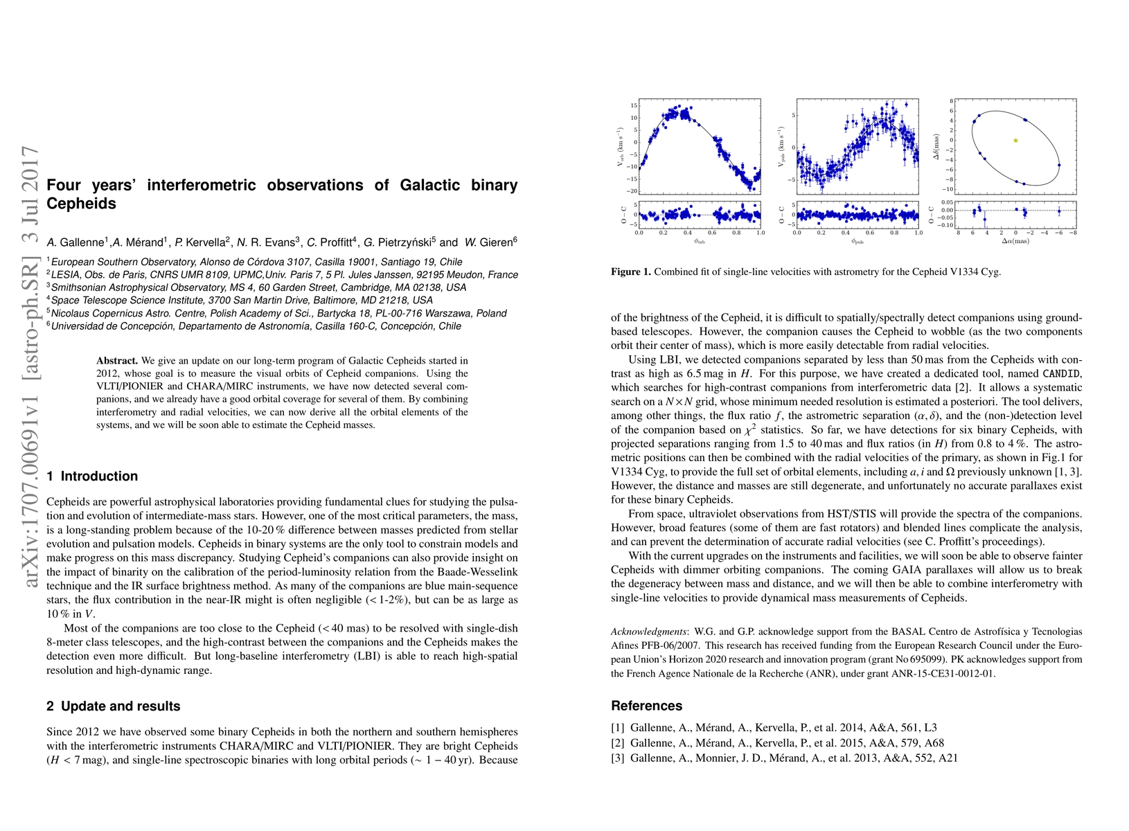 We give an update on our long-term program of Galactic Cepheids started in 2012, whose goal is to measure the visual orbits of Cepheid companions. Using the VLTI/PIONIER and CHARA/MIRC instruments, we have now detected several com- panions, and we already have a good orbital coverage for several of them. By combining interferometry and radial velocities, we can now derive all the orbital elements of the systems, and we will be soon able to estimate the Cepheid masses.