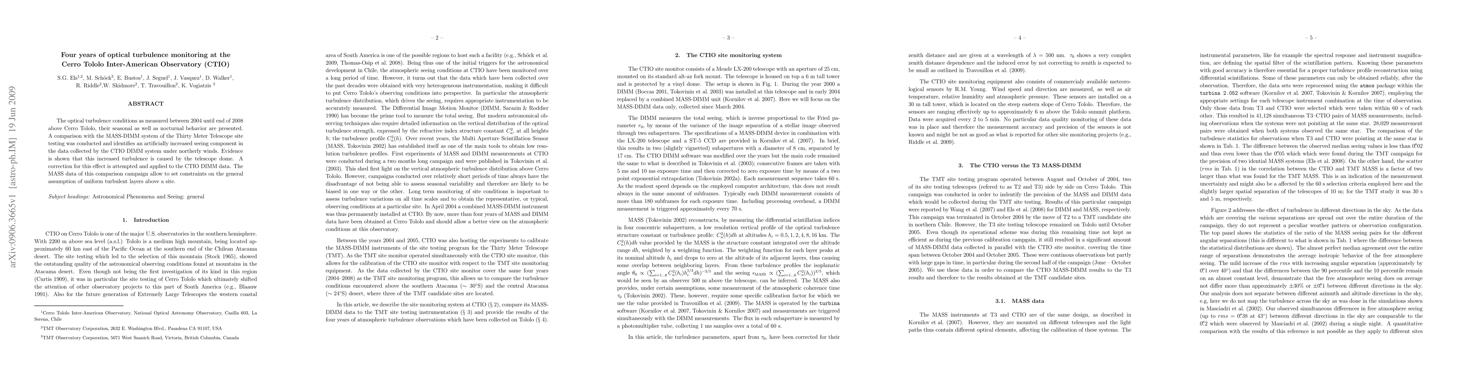 The optical turbulence conditions as measured between 2004 until end of 2008 above Cerro Tololo, their seasonal as well as nocturnal behavior are presented. A comparison with the MASS-DIMM system of the Thirty Meter Telescope site testing was conducted and identifies an artificially increased seeing component in the data collected by the CTIO DIMM system under northerly winds. Evidence is shown that this increased turbulence is caused by the telescope dome. A correction for this effect is attempted and applied to the CTIO DIMM data. The MASS data of this comparison campaign allow to set constraints on the general assumption of uniform turbulent layers above a site.