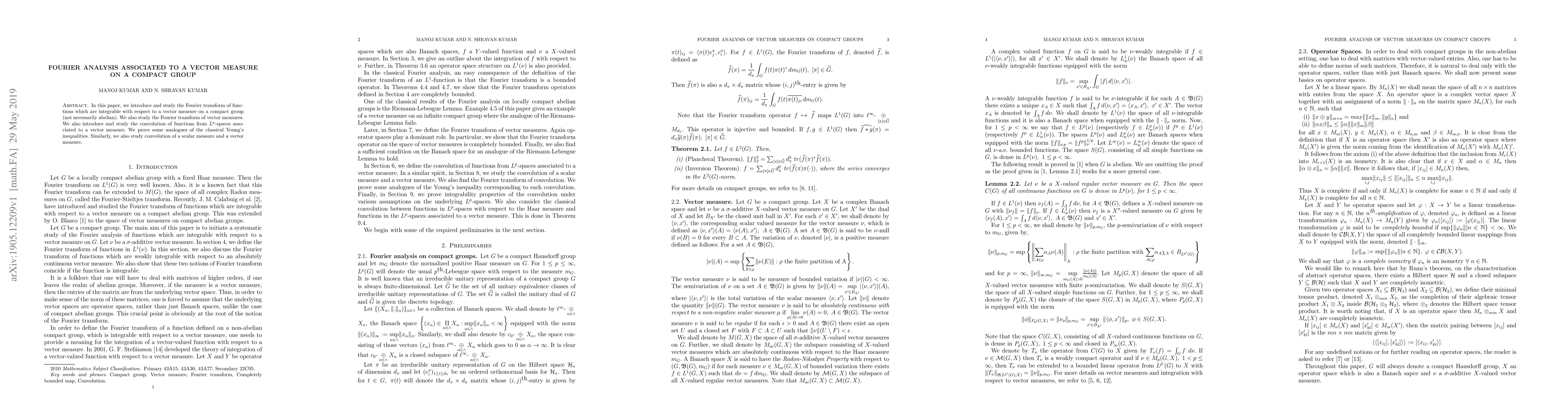 This paper explores the Fourier transform of functions integrable with respect to a vector measure on compact groups, introducing new results on convolution inequalities.