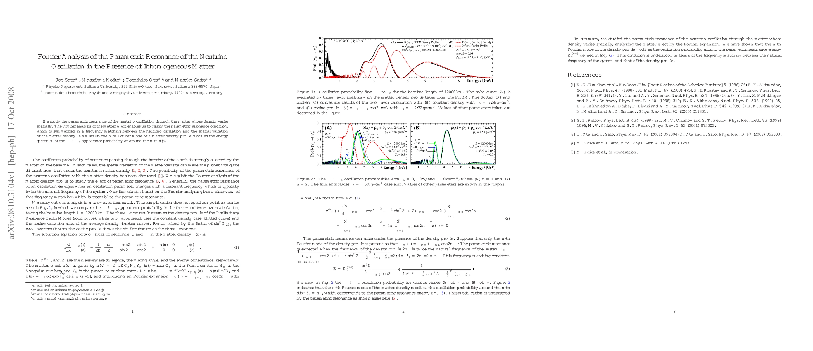 Researchers study how variations in matter density affect neutrino oscillations using Fourier analysis, revealing a frequency matching condition that modifies the energy spectrum of a specific neutrino transition.