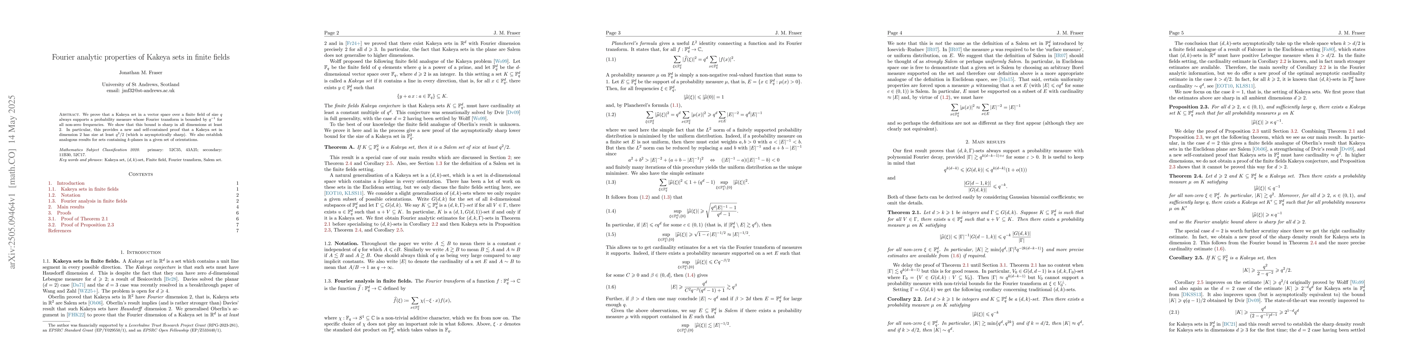 The paper employs Fourier analytic techniques to study Kakeya sets in finite fields, proving properties related to the Fourier transform of measures supported on these sets.