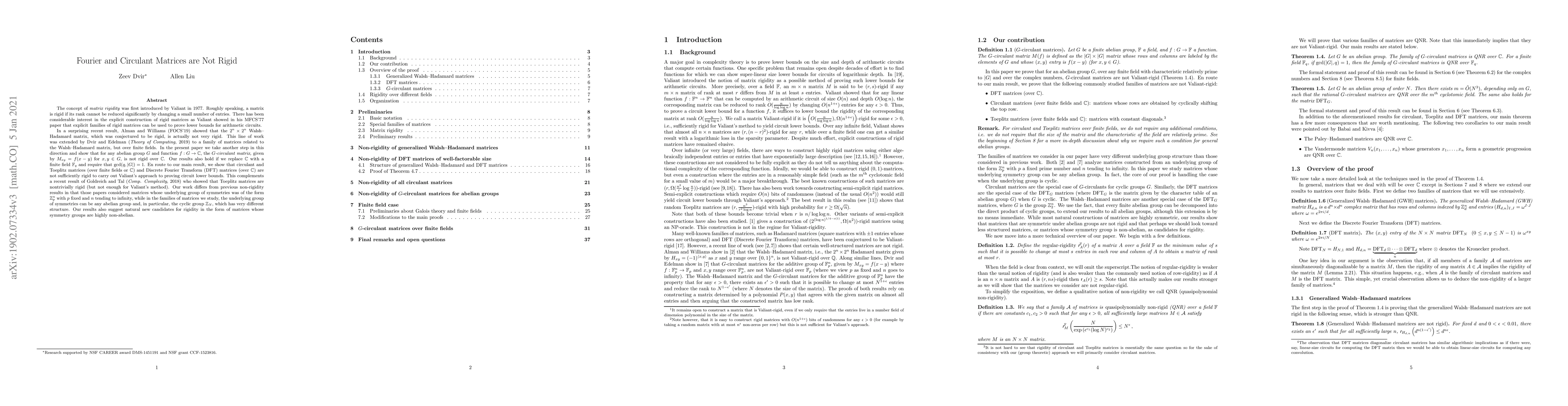 Researchers prove that Fourier, circulant, and Toeplitz matrices are not rigid, challenging a method for proving circuit lower bounds in arithmetic circuits.