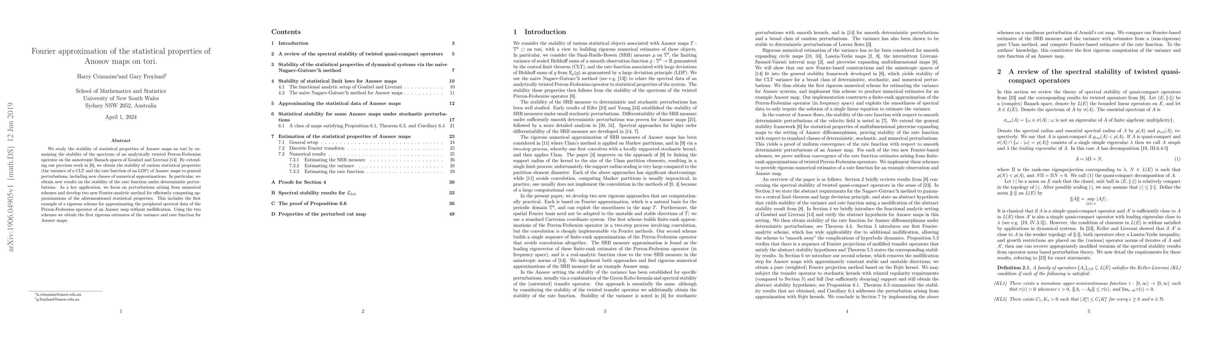We study the stability of statistical properties of Anosov maps on tori by examining the stability of the spectrum of an analytically twisted Perron-Frobenius operator on the anisotropic Banach spaces of Gou\"ezel and Liverani. By extending our previous work in [8], we obtain the stability of various statistical properties (the variance of a CLT and the rate function of an LDP) of Anosov maps to general perturbations, including new classes of numerical approximations. In particular, we obtain new results on the stability of the rate function under deterministic perturbations. As a key application, we focus on perturbations arising from numerical schemes and develop two new Fourier-analytic method for efficiently computing approximations of the aforementioned statistical properties. This includes the first example of a rigorous scheme for approximating the peripheral spectral data of the Perron-Frobenius operator of an Anosov map without mollification. Using the two schemes we obtain the first rigorous estimates of the variance and rate function for Anosov maps.