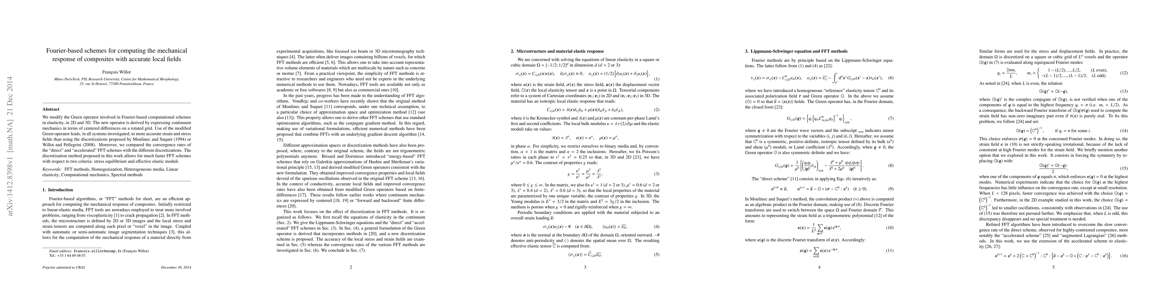 This paper proposes a modified Green operator for Fourier-based computational schemes in elasticity, derived using centered differences on a rotated grid, which yields more accurate strain and stress fields compared to existing methods. The new discretization method also enhances the convergence rates of FFT schemes for stress equilibrium and effective elastic moduli.