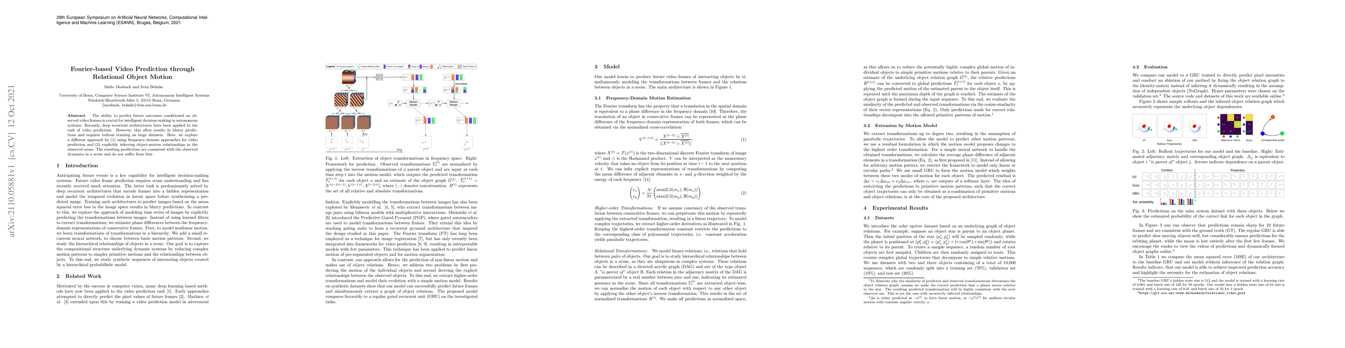 The ability to predict future outcomes conditioned on observed video frames is crucial for intelligent decision-making in autonomous systems. Recently, deep recurrent architectures have been applied to the task of video prediction. However, this often results in blurry predictions and requires tedious training on large datasets. Here, we explore a different approach by (1) using frequency-domain approaches for video prediction and (2) explicitly inferring object-motion relationships in the observed scene. The resulting predictions are consistent with the observed dynamics in a scene and do not suffer from blur.