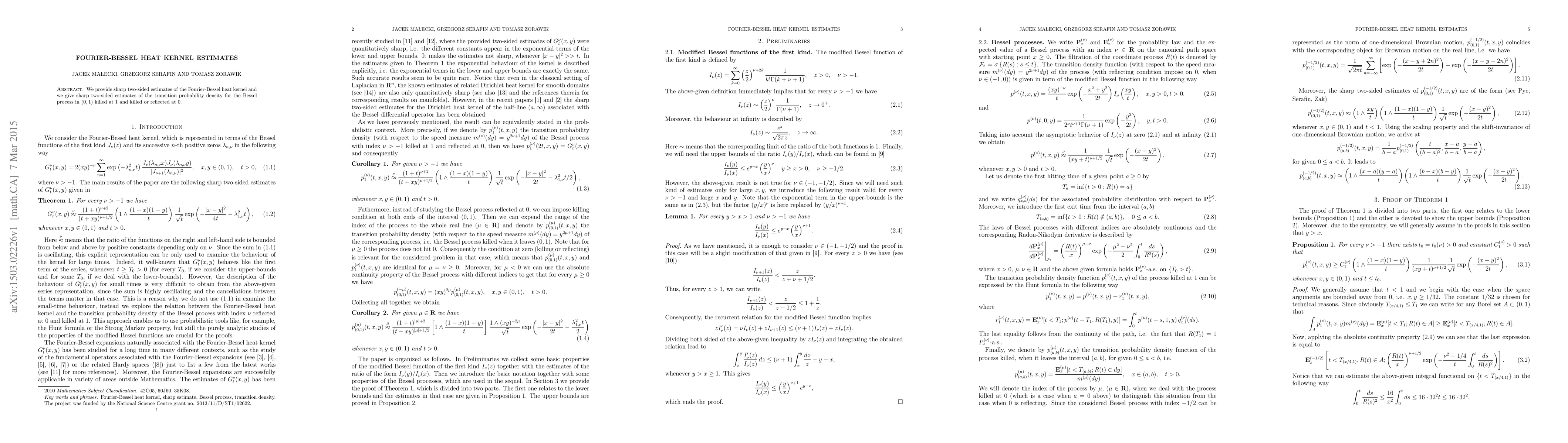 Summary: This paper presents precise upper and lower bounds for the Fourier-Bessel heat kernel, along with accurate transition probability density estimates for Bessel processes in the interval (0,1) under different boundary conditions.