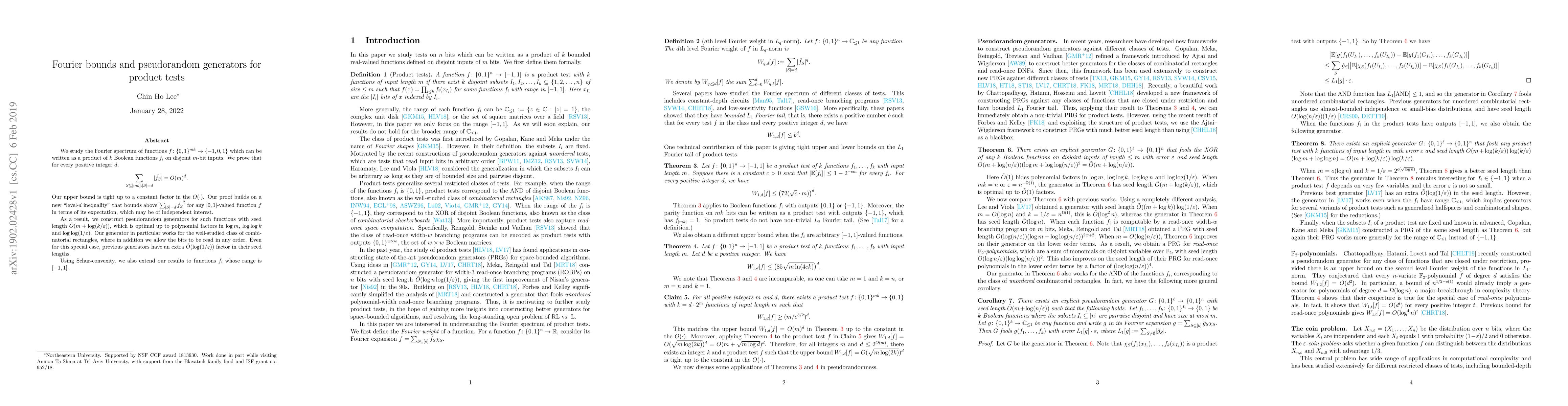 Researchers develop a new method to analyze Fourier spectra of functions, leading to pseudorandom generators with improved efficiency for product tests and extending the results to functions with ranges beyond -1 and 1.