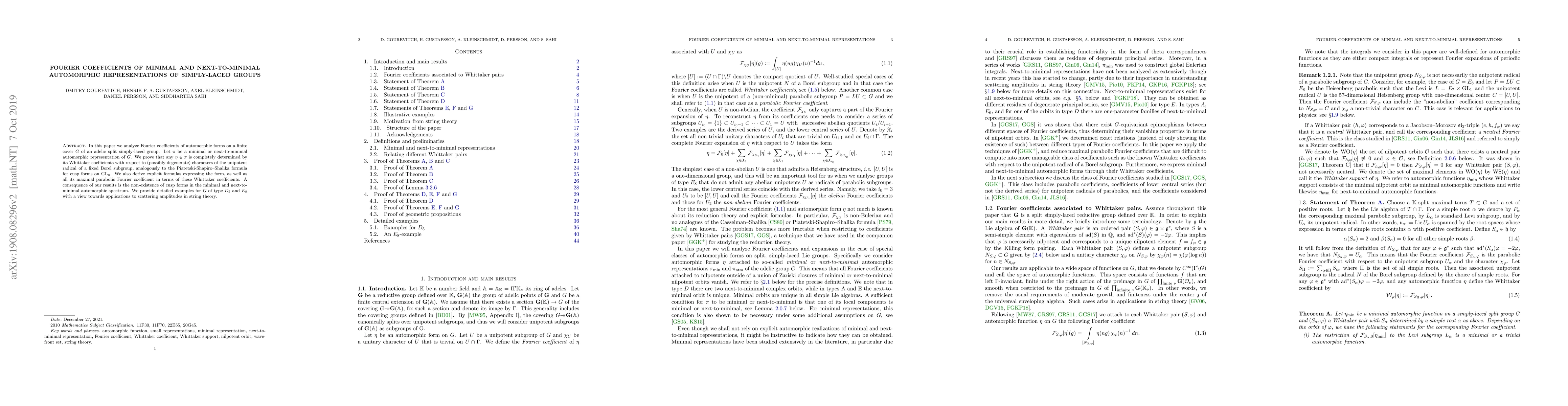 Researchers prove that Fourier coefficients of automorphic representations on simply-laced groups can be determined solely by Whittaker coefficients, leading to the non-existence of cusp forms in the minimal and next-to-minimal spectrum.