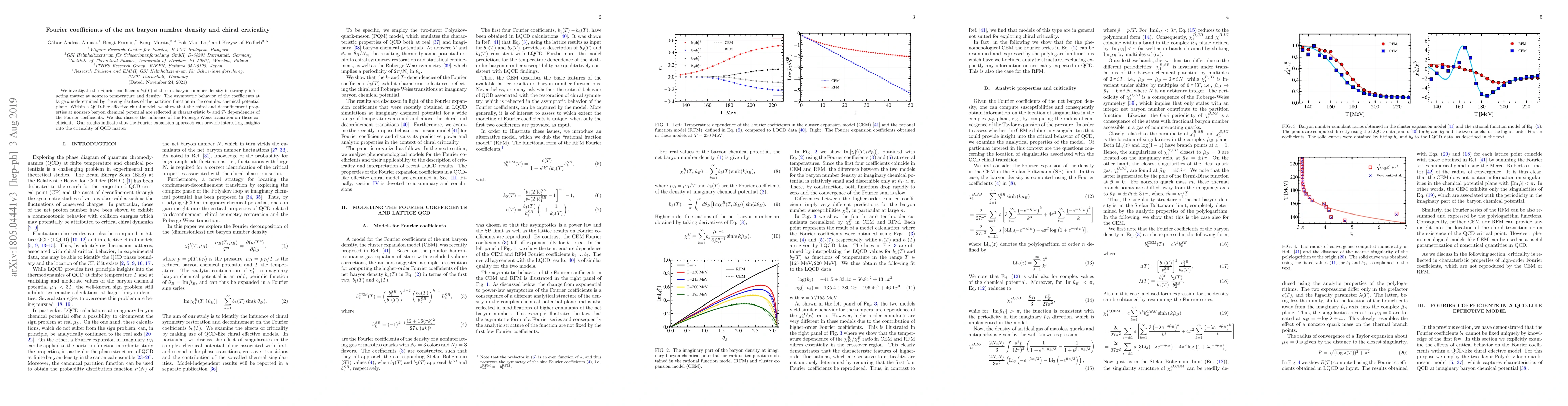This paper examines the Fourier coefficients $b_k(T)$ of the net-baryon number density in strongly interacting matter at nonzero temperature and density, revealing how chiral and deconfinement properties influence these coefficients. The study highlights the impact of the Roberge-Weiss transition and suggests that Fourier expansion offers valuable insights into the criticality of QCD matter.