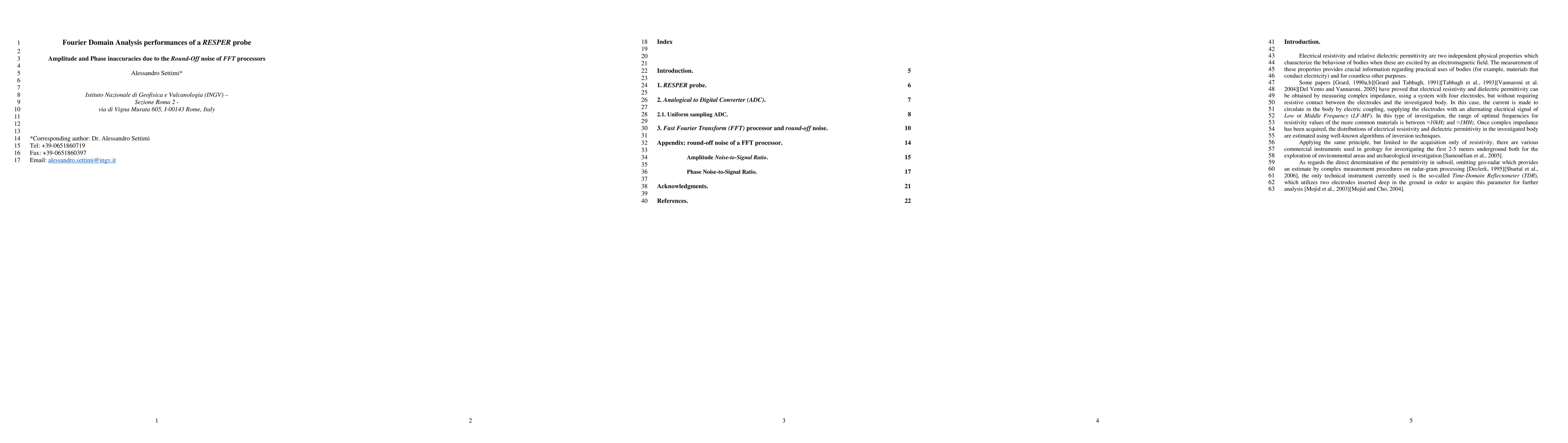 This report proposes to discuss the Fourier domain analysis performances of a RESPER probe. A uniform ADC, which is characterized by a sensible phase inaccuracy depending on frequency, is connected to a Fast Fourier Transform (FFT) processor, that is especially affected by a round-off amplitude noise linked to both the FFT register length and samples number. If the register length is equal to 32 bits, then the round-off noise is entirely negligible, else, once bits are reduced to 16, a technique of compensation must occur. In fact, oversampling can be employed within a short time window, reaching a compromise between the needs of limiting the phase inaccuracy due to ADC and not raising too much the number of averaged FFT values sufficient to bound the round-off. Finally, the appendix presents an outline of somewhat lengthy demonstrations needed to calculate the amplitude and especially phase inaccuracies due to the round-off noise of FFT processors.