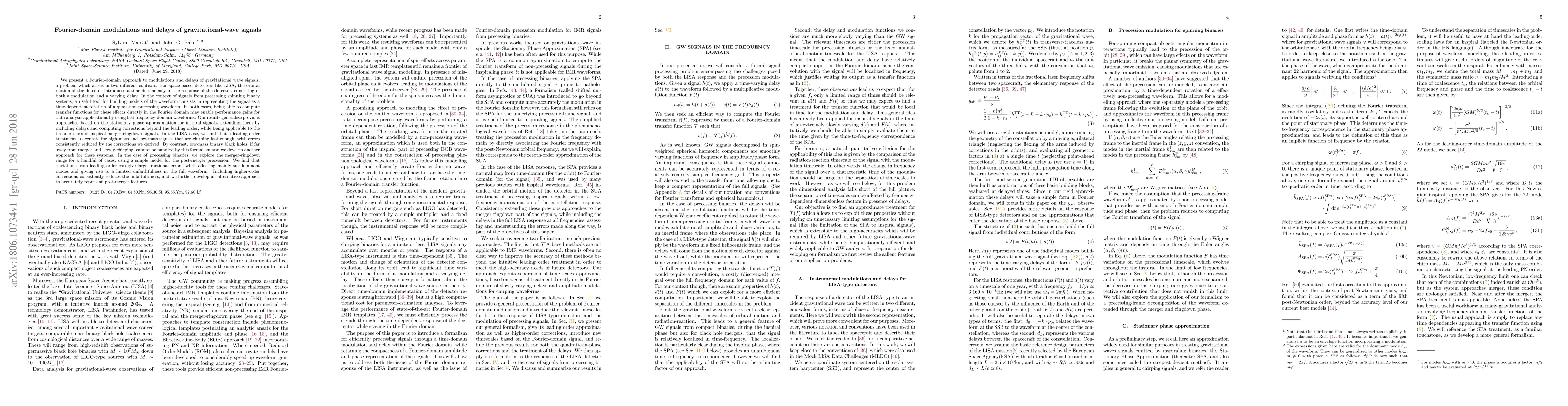 This paper introduces a Fourier-domain method to analyze modulations and delays in gravitational wave signals from space-based detectors and precessing binary systems, providing corrections beyond leading order. It finds that the method is effective for high-mass and fast-chirping signals but requires alternative approaches for low-mass, slowly-chirping binaries.
