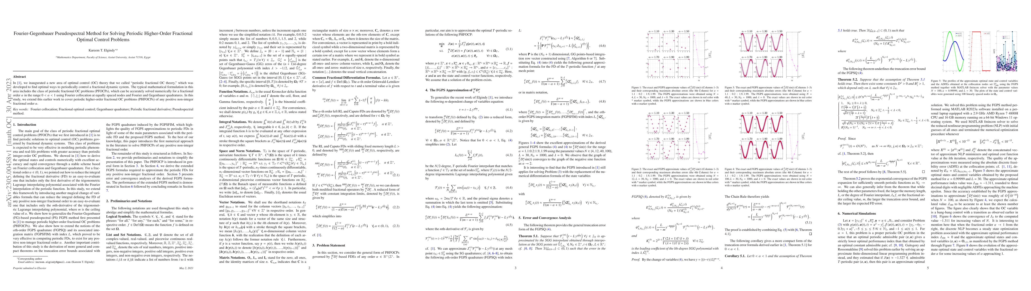 In [1], we inaugurated a new area of optimal control (OC) theory that we called "periodic fractional OC theory," which was developed to find optimal ways to periodically control a fractional dynamic system. The typical mathematical formulation in this area includes the class of periodic fractional OC problems (PFOCPs), which can be accurately solved numerically for a fractional order {\alpha} in the range 0 < {\alpha} < 1 using Fourier collocation at equally spaced nodes and Fourier and Gegenbauer quadratures. In this study, we extend this earlier work to cover periodic higher-order fractional OC problems (PHFOCPs) of any positive non-integer fractional order {\alpha}.