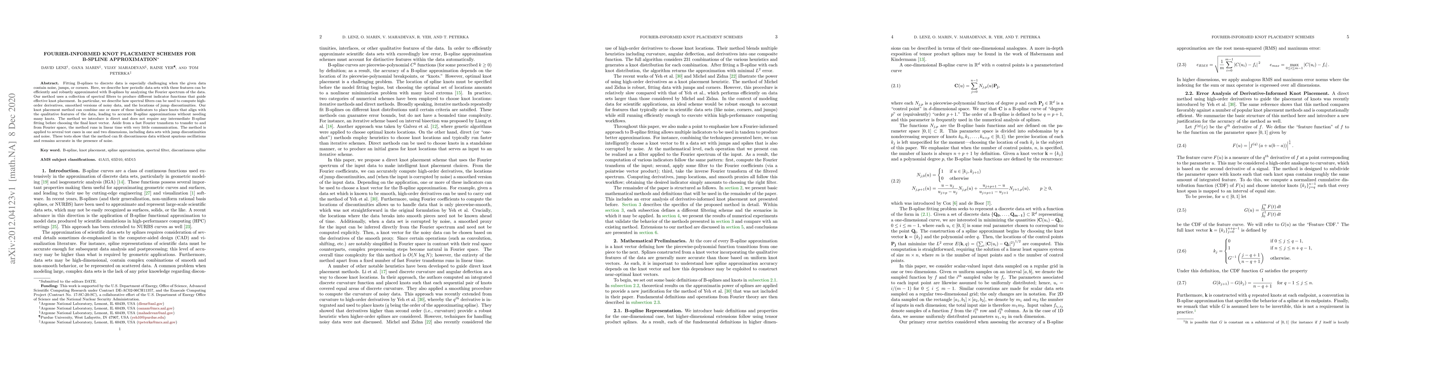 This paper proposes a Fourier-informed knot placement scheme for B-spline approximation that efficiently handles noisy, jumpy, or cornered data by analyzing the Fourier spectrum. The method uses spectral filters to guide knot placement, ensuring accurate approximations without excessive knots, and demonstrates effectiveness in one and two dimensions.