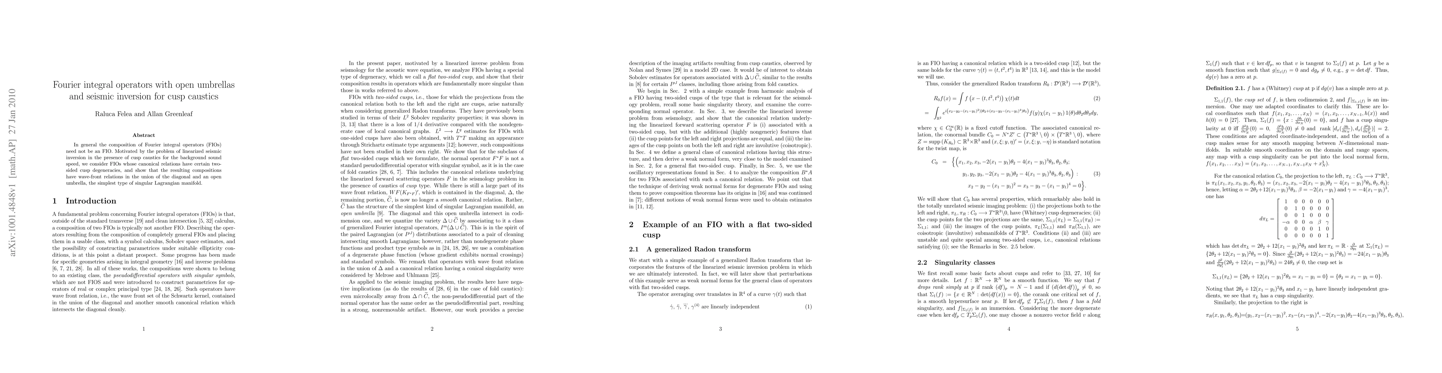 This paper investigates the composition of Fourier integral operators (FIOs) with cusp caustics, demonstrating that such compositions yield wave-front relations in the union of the diagonal and an open umbrella, addressing challenges in seismic inversion.