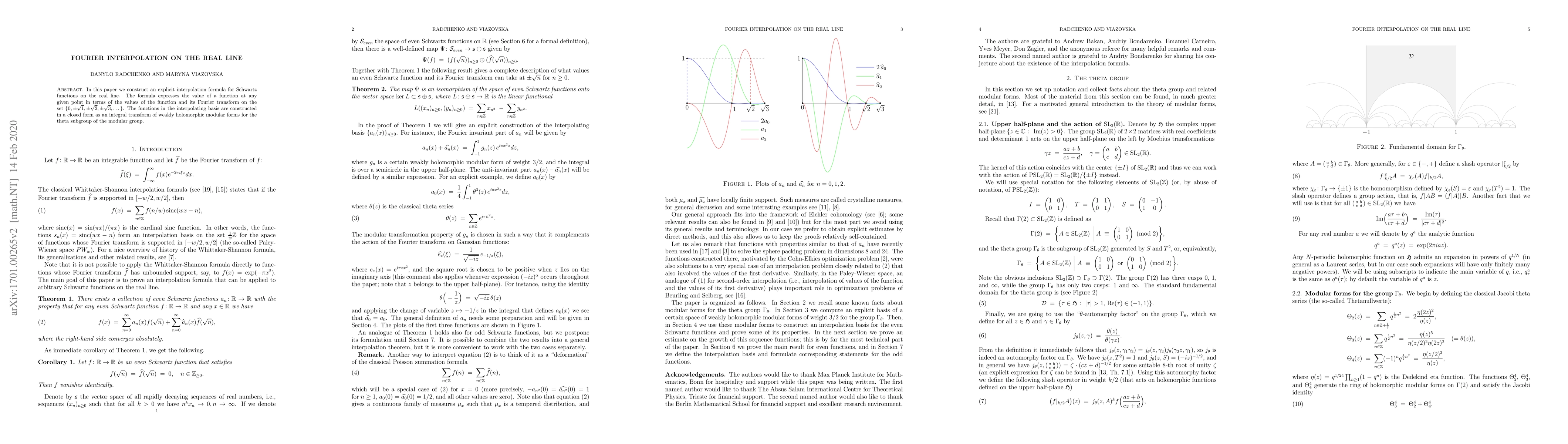 We use weakly holomorphic modular forms for the Hecke theta group to construct an explicit interpolation formula for Schwartz functions on the real line. The formula expresses the value of a function at any given point in terms of the values of the function and its Fourier transform on the set $\{0, \pm\sqrt{1}, \pm\sqrt{2}, \pm\sqrt{3},\dots\}$.