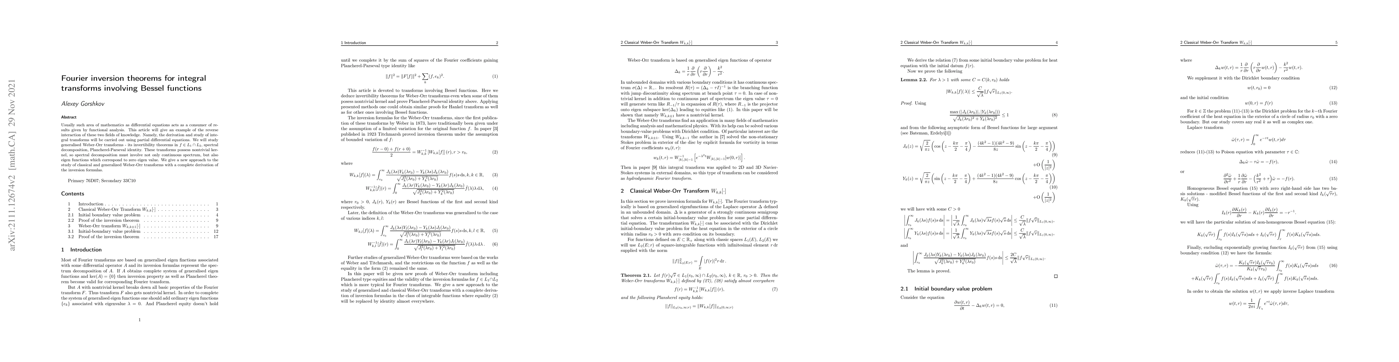 This paper explores the interaction between differential equations and functional analysis through the study of generalised Weber-Orr transforms involving Bessel functions. It provides new inversion theorems and spectral decomposition, including the consideration of eigenfunctions corresponding to zero eigenvalues.