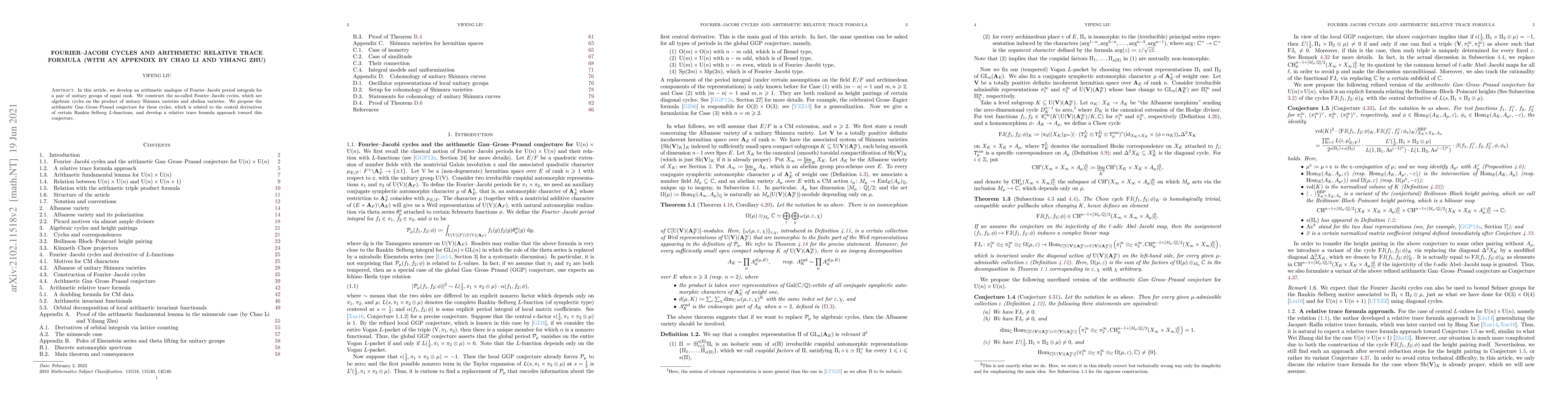 This paper develops an arithmetic analogue of Fourier-Jacobi period integrals for unitary groups, constructs Fourier-Jacobi cycles on product Shimura varieties, and proposes a relative trace formula approach to the Gan-Gross-Prasad conjecture for these cycles. An arithmetic fundamental lemma conjecture is also proposed and verified for certain cases.