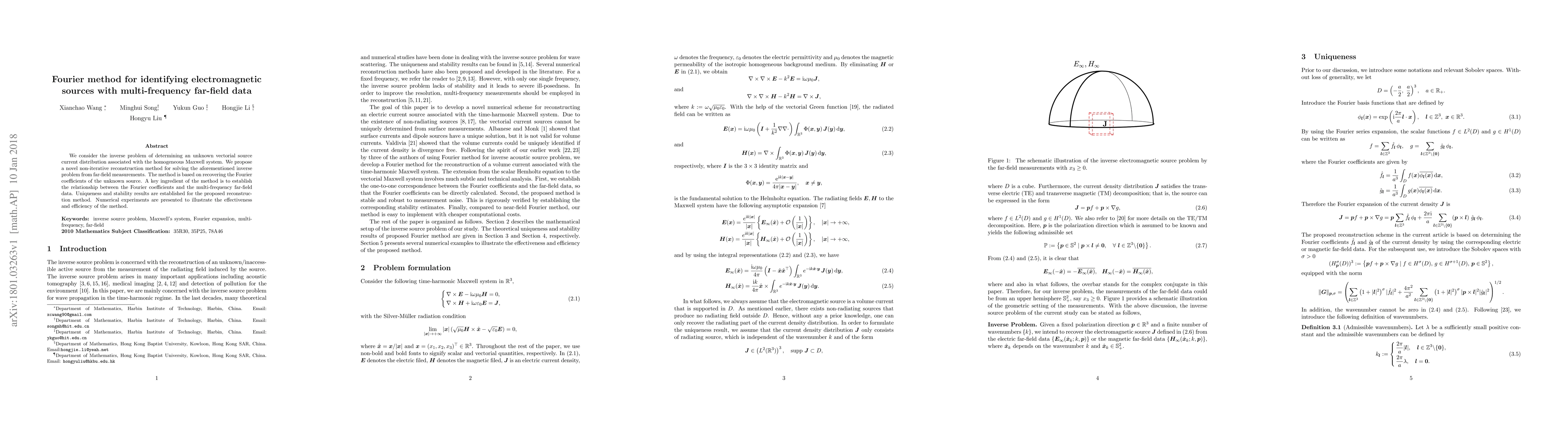 This paper proposes a non-iterative Fourier method for reconstructing vectorial source current distributions from multi-frequency far-field electromagnetic data. The method establishes a relationship between Fourier coefficients and far-field data, ensuring uniqueness and stability, and is validated through numerical experiments.