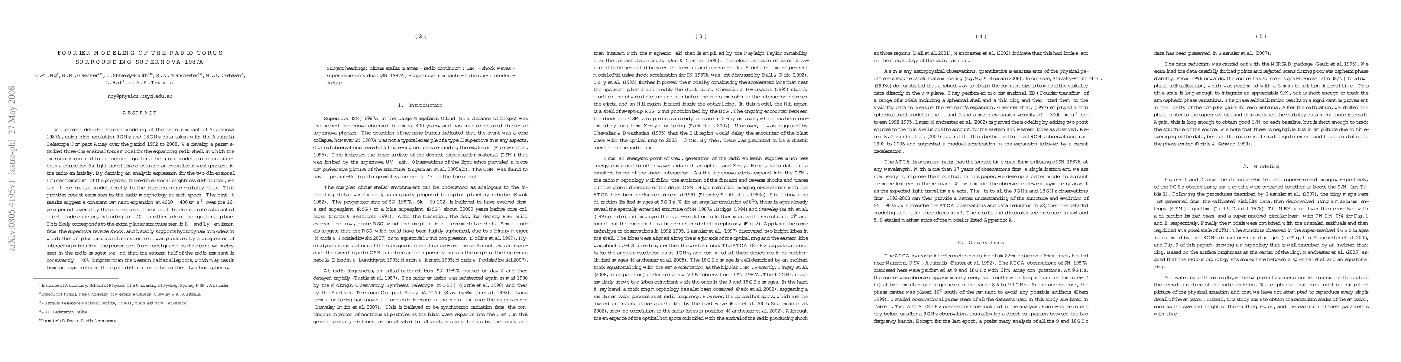 We present detailed Fourier modeling of the radio remnant of Supernova 1987A, using high-resolution 9 GHz and 18 GHz data taken with the Australia Telescope Compact Array over the period 1992 to 2008. We develop a parameterized three-dimensional torus model for the expanding radio shell, in which the emission is confined to an inclined equatorial belt; our model also incorporates both a correction for light travel-time effects and an overall east-west gradient in the radio emissivity. By deriving an analytic expression for the two-dimensional Fourier transform of the projected three-dimensional brightness distribution, we can fit our spatial model directly to the interferometric visibility data. This provides robust estimates to the radio morphology at each epoch. The best-fit results suggest a constant remnant expansion at 4000 +/- 400 km/s over the 16-year period covered by the observations. The model fits also indicate substantial mid-latitude emission, extending to 40 degree on either side of the equatorial plane. This likely corresponds to the extra-planar structure seen in H$\alpha$ and Ly$\alpha$ emission from the supernova reverse shock, and broadly supports hydrodynamic models in which the complex circumstellar environment was produced by a progression of interacting winds from the progenitor. Our model quantifies the clear asymmetry seen in the radio images: we find that the eastern half of the radio remnant is consistently ~40 brighter than the western half at all epochs, which may result from an asymmetry in the ejecta distribution between these two hemispheres.