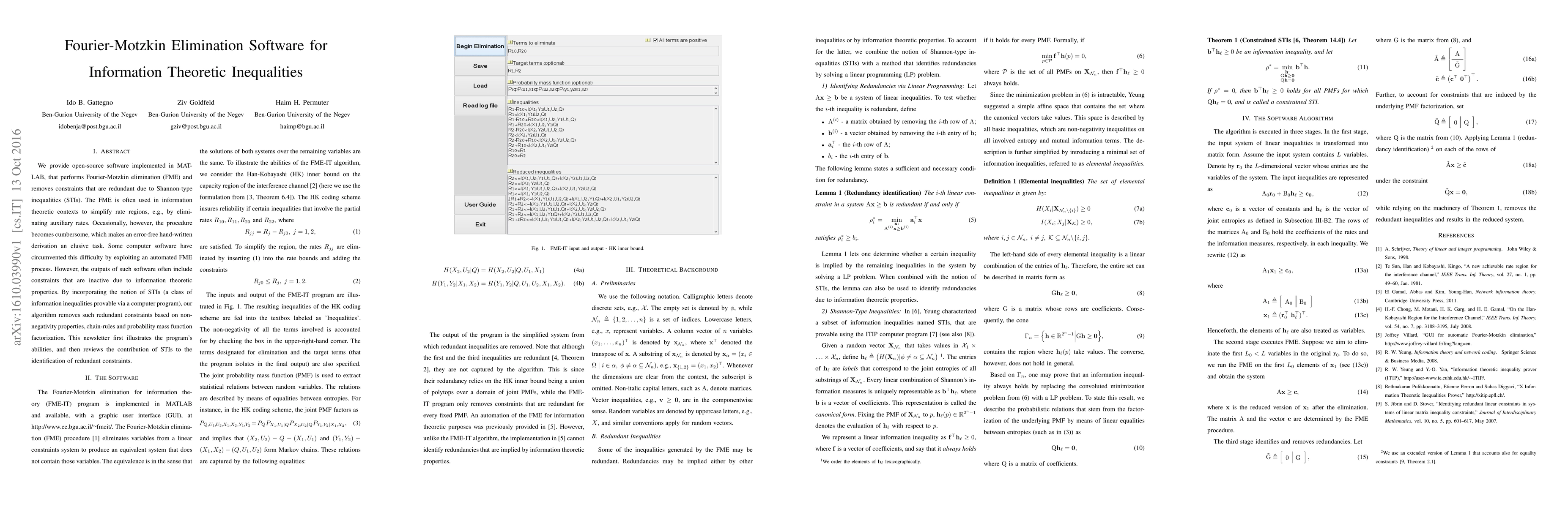 We provide open-source software implemented in MATLAB, that performs Fourier-Motzkin elimination (FME) and removes constraints that are redundant due to Shannon-type inequalities (STIs). The FME is often used in information theoretic contexts to simplify rate regions, e.g., by eliminating auxiliary rates. Occasionally, however, the procedure becomes cumbersome, which makes an error-free hand-written derivation an elusive task. Some computer software have circumvented this difficulty by exploiting an automated FME process. However, the outputs of such software often include constraints that are inactive due to information theoretic properties. By incorporating the notion of STIs (a class of information inequalities provable via a computer program), our algorithm removes such redundant constraints based on non-negativity properties, chain-rules and probability mass function factorization. This newsletter first illustrates the program's abilities, and then reviews the contribution of STIs to the identification of redundant constraints.