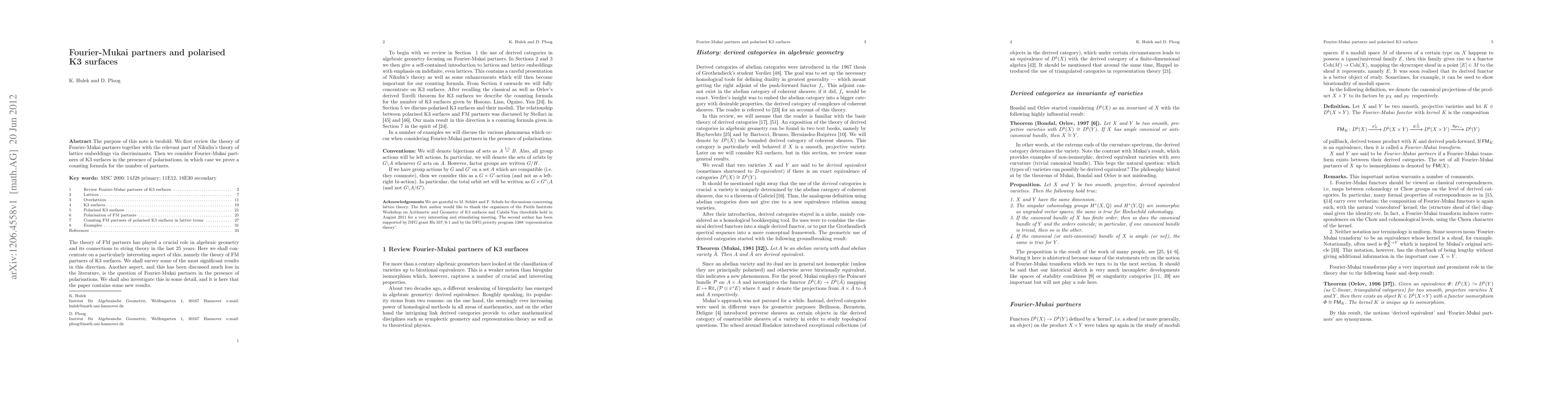 The purpose of this note is twofold. We first review the theory of Fourier-Mukai partners together with the relevant part of Nikulin's theory of lattice embeddings via discriminants. Then we consider Fourier-Mukai partners of K3 surfaces in the presence of polarisations, in which case we prove a counting formula for the number of partners.