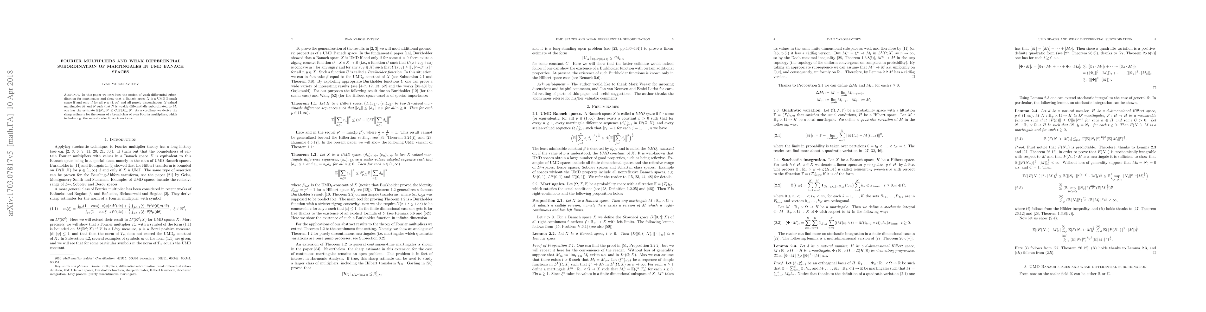 In this paper we introduce the notion of weak differential subordination for martingales and show that a Banach space $X$ is a UMD Banach space if and only if for all $p\in (1,\infty)$ and all purely discontinuous $X$-valued martingales $M$ and $N$ such that $N$ is weakly differentially subordinated to $M$, one has the estimate $\mathbb E \|N_{\infty}\|^p \leq C_p\mathbb E \|M_{\infty}\|^p$. As a corollary we derive the sharp estimate for the norms of a broad class of even Fourier multipliers, which includes e.g. the second order Riesz transforms.