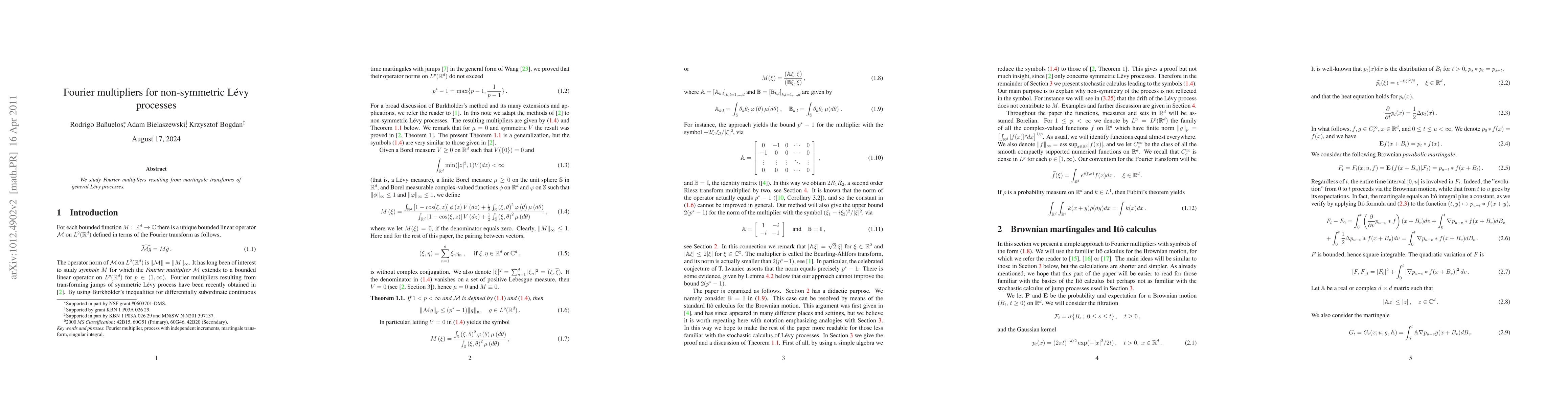 Summary: This paper investigates Fourier multipliers derived from martingale transforms in non-symmetric Lévy processes, focusing on their theoretical properties and implications. The study aims to understand the behavior and characteristics of these multipliers in the context of Lévy processes.