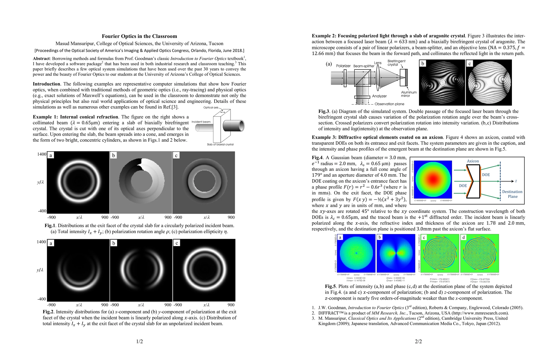 Borrowing methods and formulas from Prof. Goodman's classic Introduction to Fourier Optics textbook [1], I have developed a software package [2] that has been used in both industrial research and classroom teaching [3]. This paper briefly describes a few optical system simulations that have been used over the past 30 years to convey the power and the beauty of Fourier Optics to our students at the University of Arizona's College of Optical Sciences.