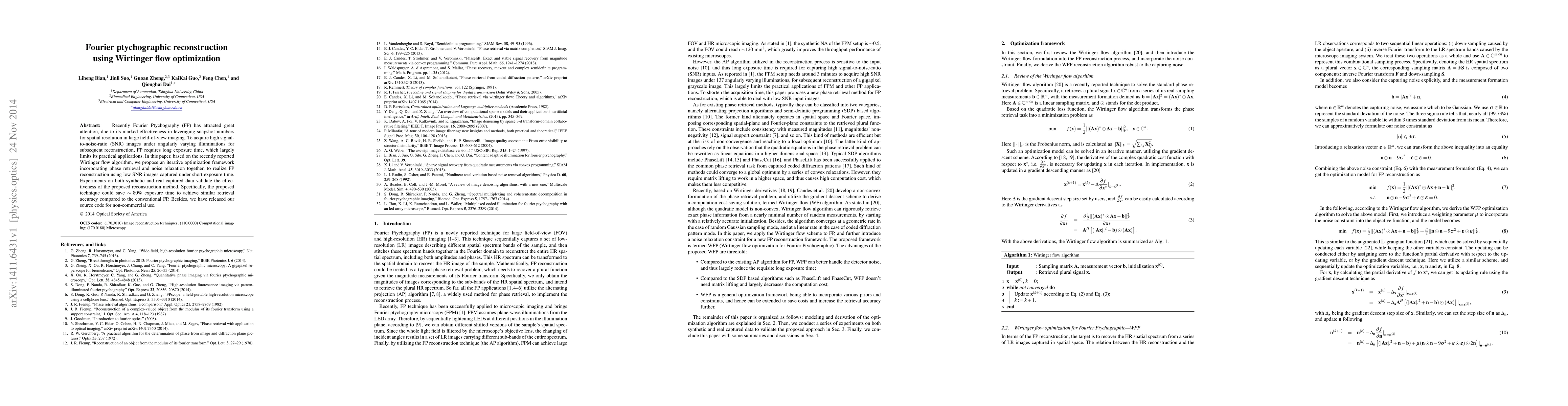This paper proposes an iterative optimization framework using the Wirtinger flow algorithm to reconstruct Fourier Ptychography images with low SNR and short exposure times, achieving similar accuracy to conventional methods while reducing exposure time by approximately 80%. The method combines phase retrieval and noise relaxation, validated through experiments on both synthetic and real data.