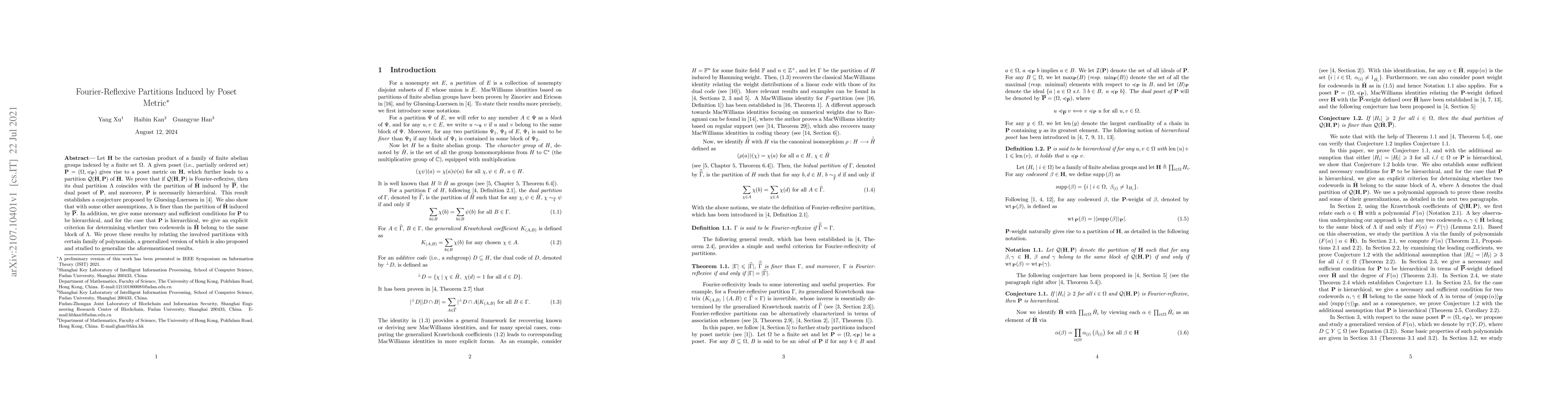 This paper investigates the Fourier-reflexive partitions of a Cartesian product of finite abelian groups induced by a poset metric, proving that such partitions coincide with those induced by the dual poset if the original partition is Fourier-reflexive. It also establishes conditions for the poset to be hierarchical and provides a criterion for determining block membership in the partition.