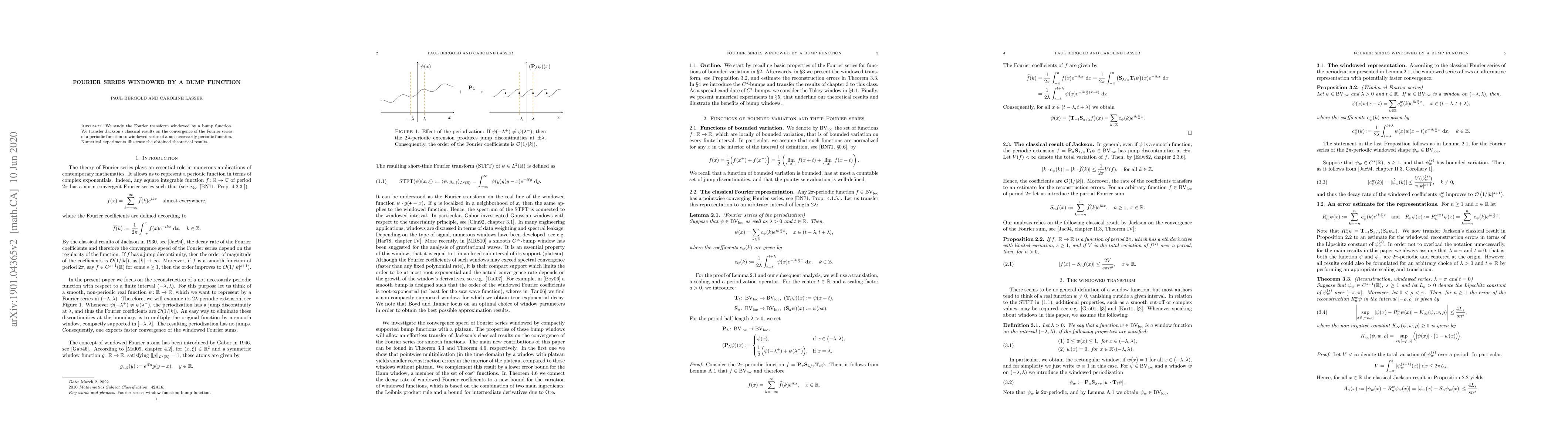 This paper investigates the Fourier transform of a function windowed by a bump function, extending Jackson's classical convergence results for periodic Fourier series to non-periodic windowed series. Numerical experiments validate the theoretical findings.