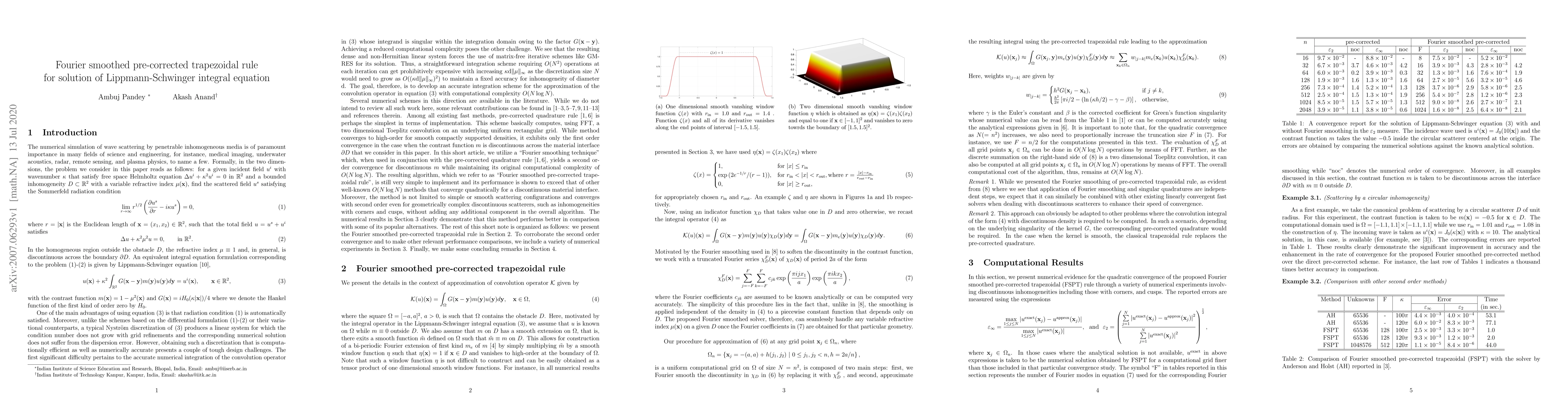 This paper proposes a Fourier smoothed pre-corrected trapezoidal rule for solving the Lippmann-Schwinger integral equation, achieving second-order convergence for scattering problems with discontinuous material properties while maintaining $O(N \log N)$ computational complexity. The method is simple to implement and effective for complex geometries.