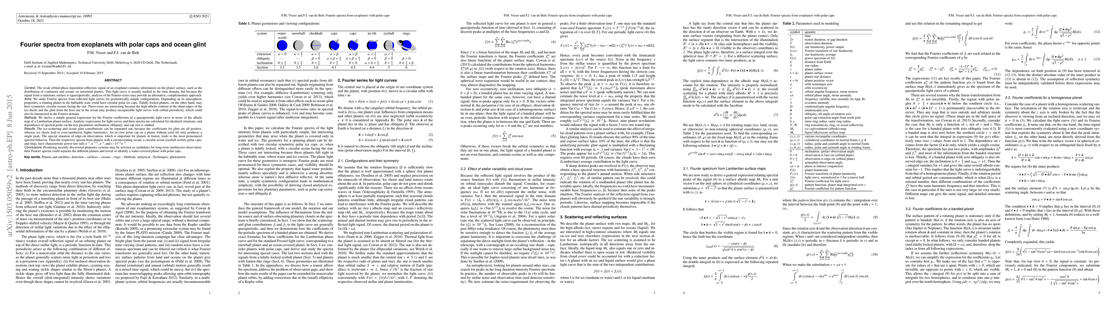 This paper explores Fourier spectra of exoplanet light curves to analyze surface features like polar caps and ocean glint, providing a method to interpret orbital-phase dependent reflection signals. It derives expressions for Fourier coefficients and examines idealized cases to understand how parameters like inclination and cap size affect spectral peaks.