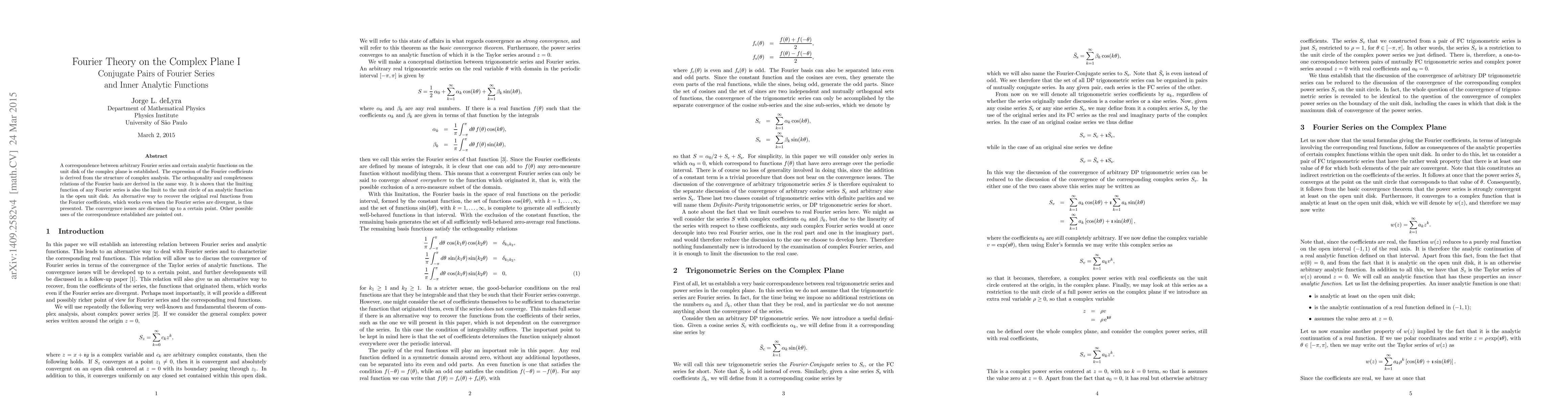 This paper establishes a correspondence between Fourier series and analytic functions on the unit disk, deriving Fourier coefficients from complex analysis. It presents an alternative method to recover real functions from Fourier coefficients, even for divergent series, and discusses convergence issues.