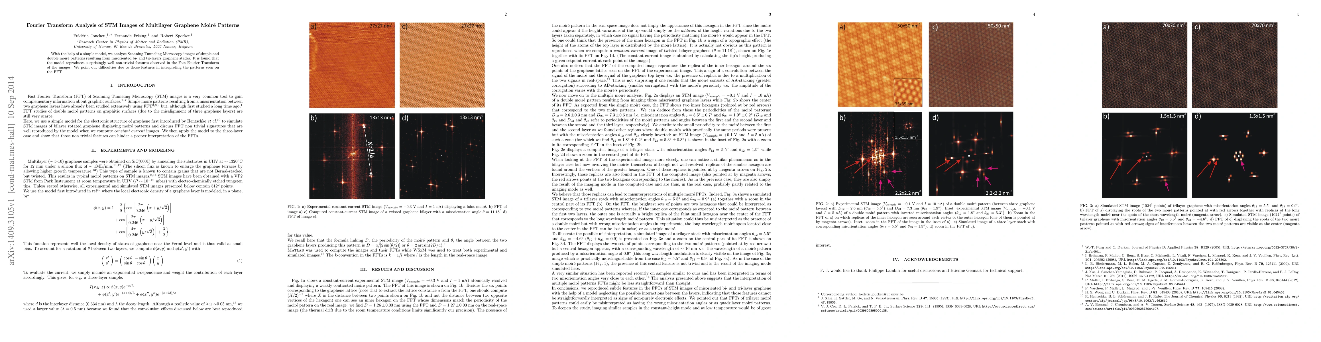 This paper analyzes Scanning Tunneling Microscopy images of multilayer graphene stacks using Fourier Transform, revealing complex moiré patterns and highlighting challenges in interpreting these patterns due to non-trivial features in the Fast Fourier Transform.