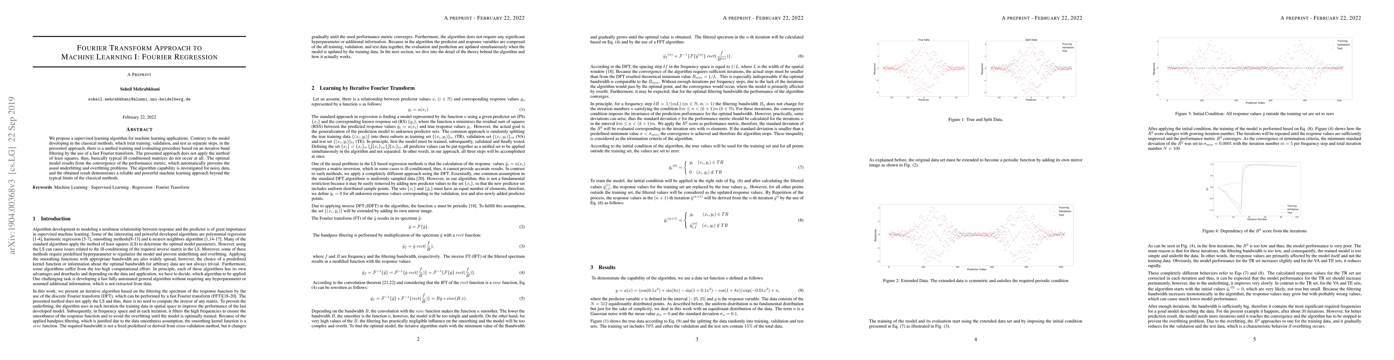 We propose a supervised learning algorithm for machine learning applications. Contrary to the model developing in the classical methods, which treat training, validation, and test as separate steps, in the presented approach, there is a unified training and evaluating procedure based on an iterative band filtering by the use of a fast Fourier transform. The presented approach does not apply the method of least squares, thus, basically typical ill-conditioned matrices do not occur at all. The optimal model results from the convergence of the performance metric, which automatically prevents the usual underfitting and overfitting problems. The algorithm capability is investigated for noisy data, and the obtained result demonstrates a reliable and powerful machine learning approach beyond the typical limits of the classical methods.