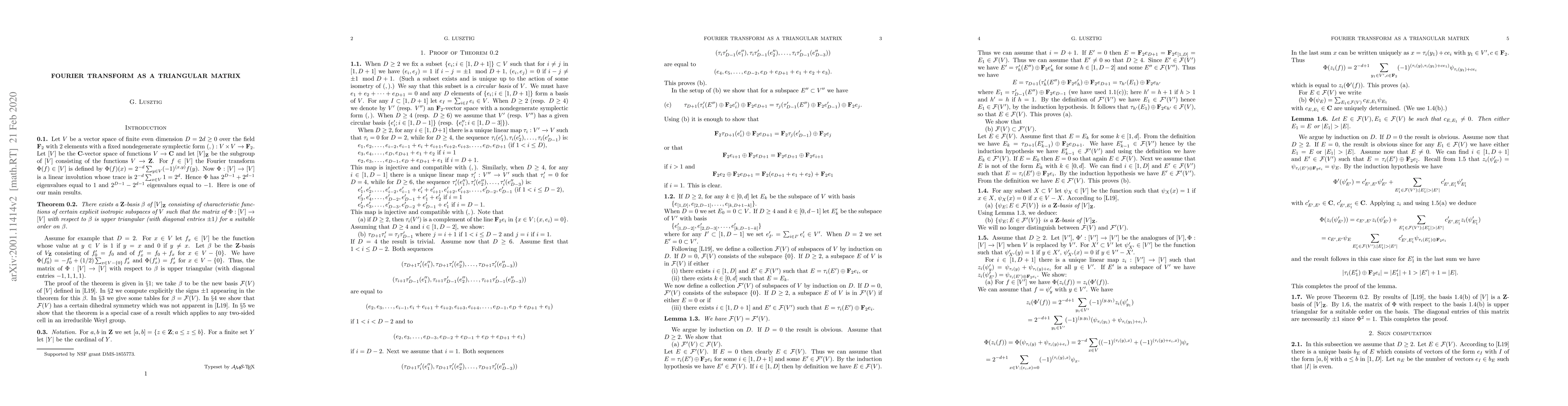 Let V be a finite dimensional vector space over the field with two elements with a given nondegenerate symplectic form. Let [V] be the vector space of complex valued functions on V and let [V]_Z be the subgroup of [V] consisting of integer valued functions. We show that there exists a Z-basis of [V]_Z consisting of characteristic functions of certain explicit isotropic subspaces of V such that the matrix of the Fourier transform from [V] to [V] with respect to this basis is triangular. We show that this is a special case of a result which holds for any two-sided cell in a Weyl group.