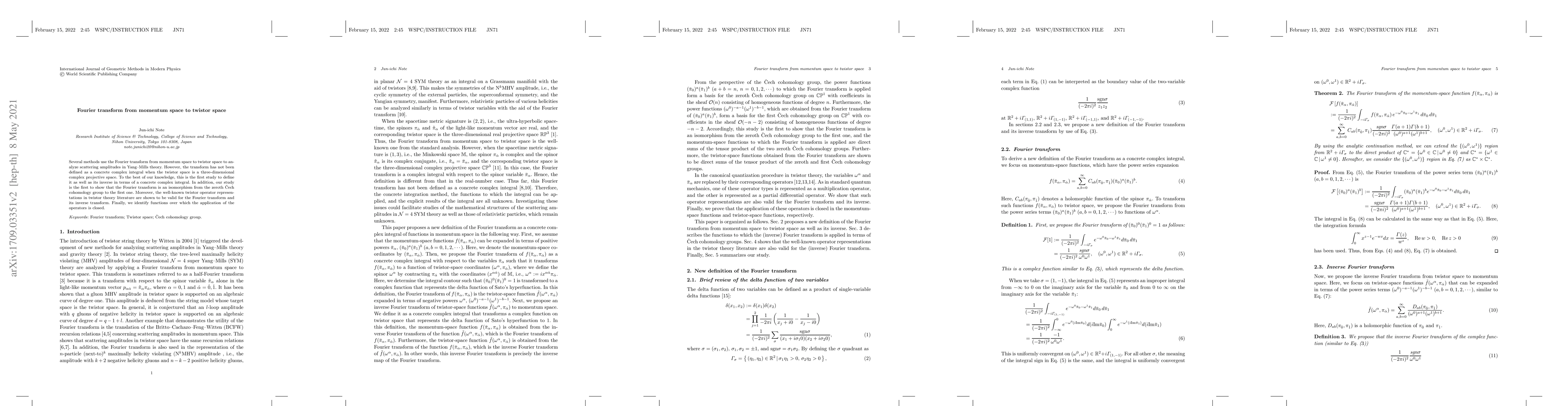A Fourier transform from momentum space to twistor space is introduced in twistor string theory, for the first time, for the case where the twistor space is a three-dimensional real projective space, corresponding to ultra-hyperbolic spacetime. In this case, the Fourier transform is the same as in the standard analysis. However, when the twistor space is a three-dimensional complex projective space, corresponding to the complexified Minkowski space, some aspects of the Fourier transform have yet to be clarified. For example, no concrete method is known for calculating the complex integral, and nor is it known which functions it should be applied to or what results are obtained. In this paper, we define a Fourier transform for momentum-space functions in terms of a certain complex integral, assuming that the functions can be expanded as power series. We also define the inverse Fourier transform for twistor-space functions in terms of a certain complex integral. Then, we show that the momentum-space functions to which the Fourier transform can be applied and the twistor-space functions that are obtained can be represented in terms of cohomology groups. Furthermore, we show that the twistor operator representations popular in the twistor theory literature are valid for the Fourier transform and its inverse transform. We also show that the functions over which the application of the operators is closed can be represented in terms of cohomology groups.