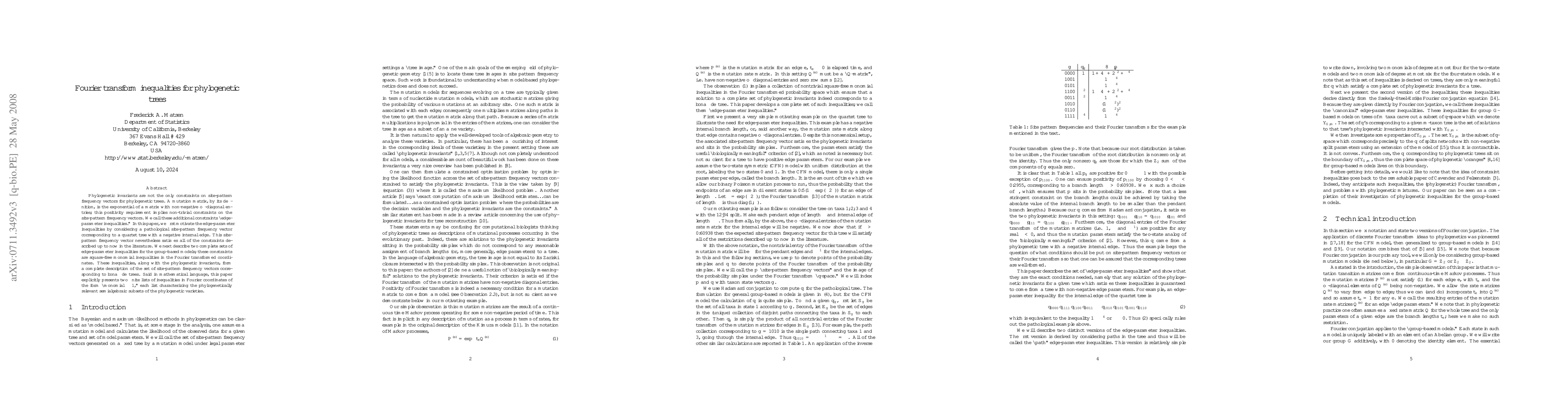 This paper introduces "edge-parameter inequalities" as additional constraints on site-pattern frequency vectors for phylogenetic trees, beyond phylogenetic invariants. It presents two complete sets of these inequalities in Fourier transformed coordinates, forming a complete description of valid site-pattern frequency vectors for bona fide trees.