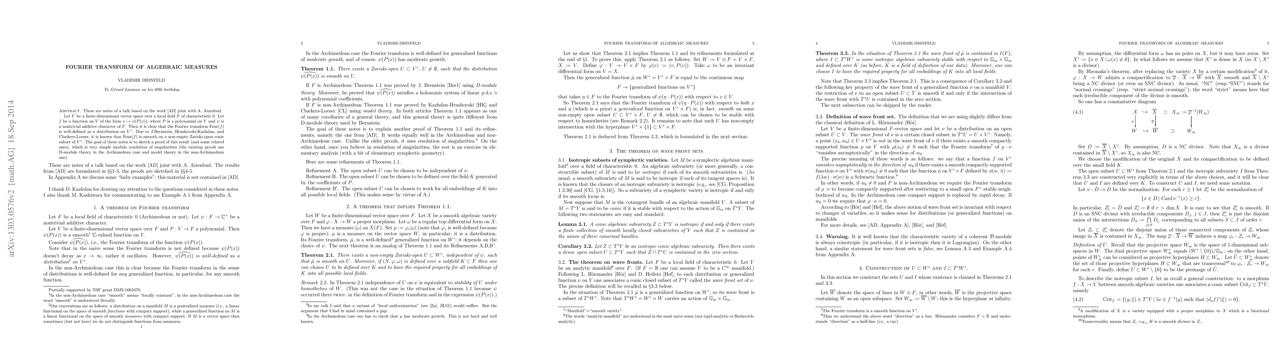 The paper investigates the Fourier transform of algebraic measures on finite-dimensional vector spaces over local fields, with a focus on its smoothness on a non-empty Zariski-open conic subset.