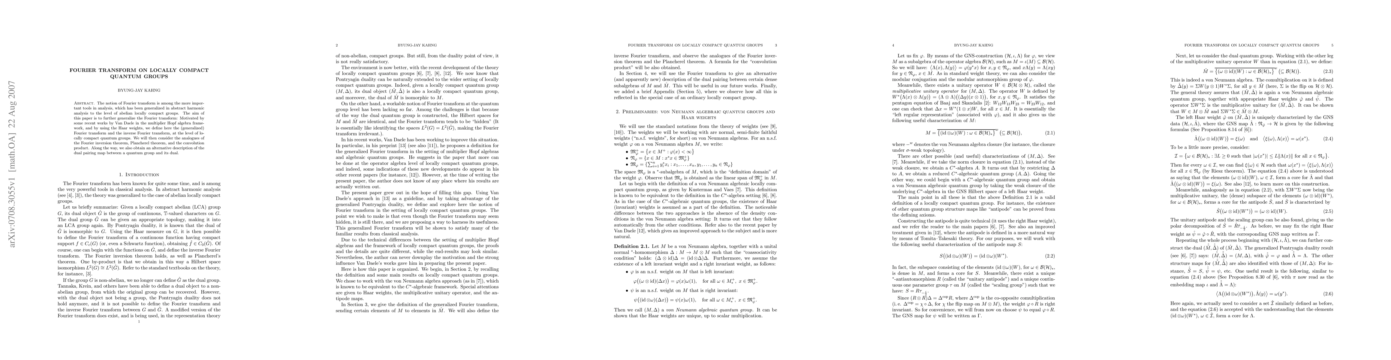 This paper generalizes the Fourier transform to locally compact quantum groups, defining both the Fourier and inverse Fourier transforms using Haar weights. It explores the analogues of the Fourier inversion theorem, Plancherel theorem, and convolution product, and provides an alternative description of the dual pairing map.