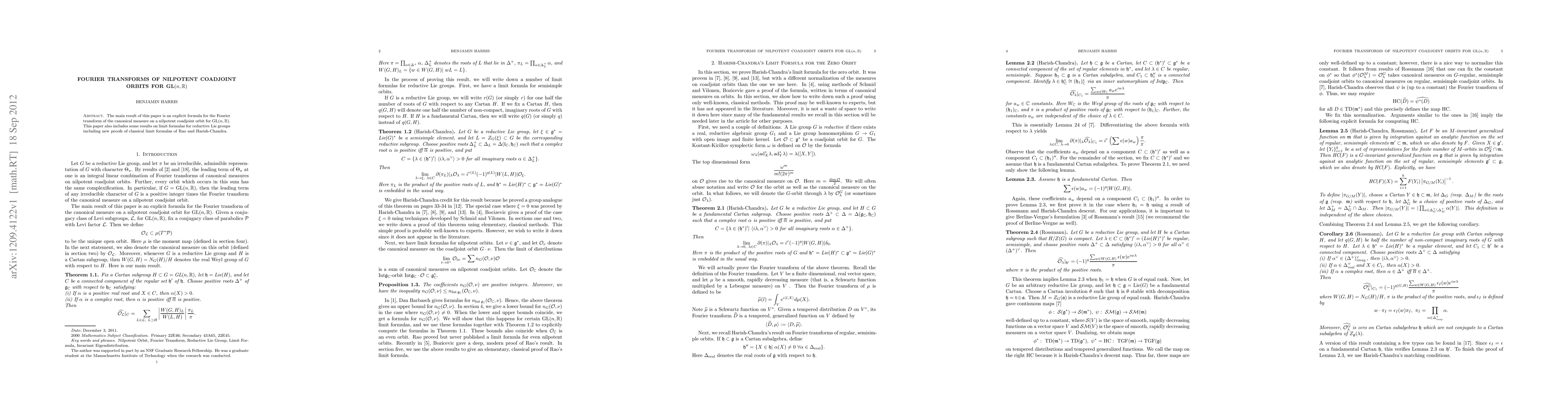This paper provides an explicit formula for the Fourier transform of the canonical measure on nilpotent coadjoint orbits for GL(n,R) and offers new proofs for classical limit formulas of Rao and Harish-Chandra in reductive Lie groups.
