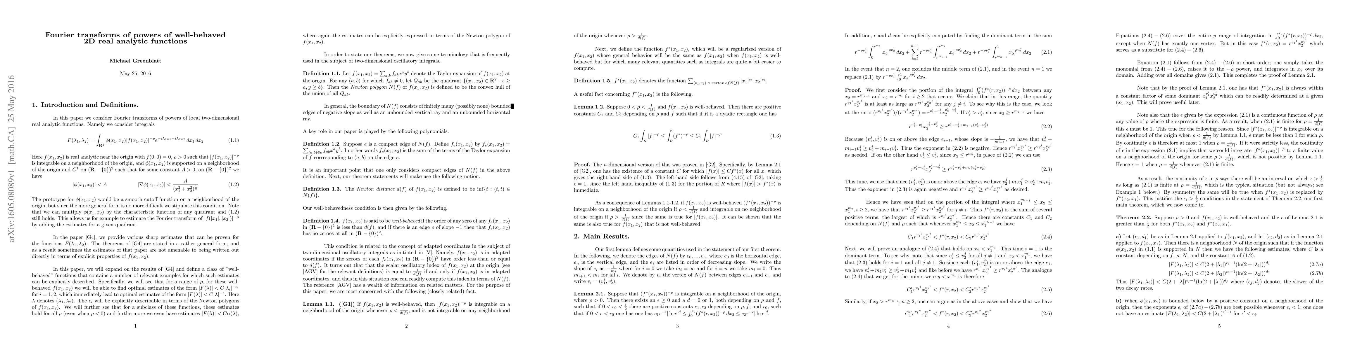 This paper is a companion paper to [G4], where sharp estimates are proven for Fourier transforms of compactly supported functions built out of two-dimensional real-analytic functions. The theorems of [G4] are stated in a rather general form. In this paper, we expand on the results of [G4] and show that there is a class of "well-behaved" functions that contains a number of relevant examples for which such estimates can be explicitly described in terms of the Newton polygon of the function. We will further see that for a subclass of these functions, one can prove noticeably more precise estimates, again in an explicitly describable way.