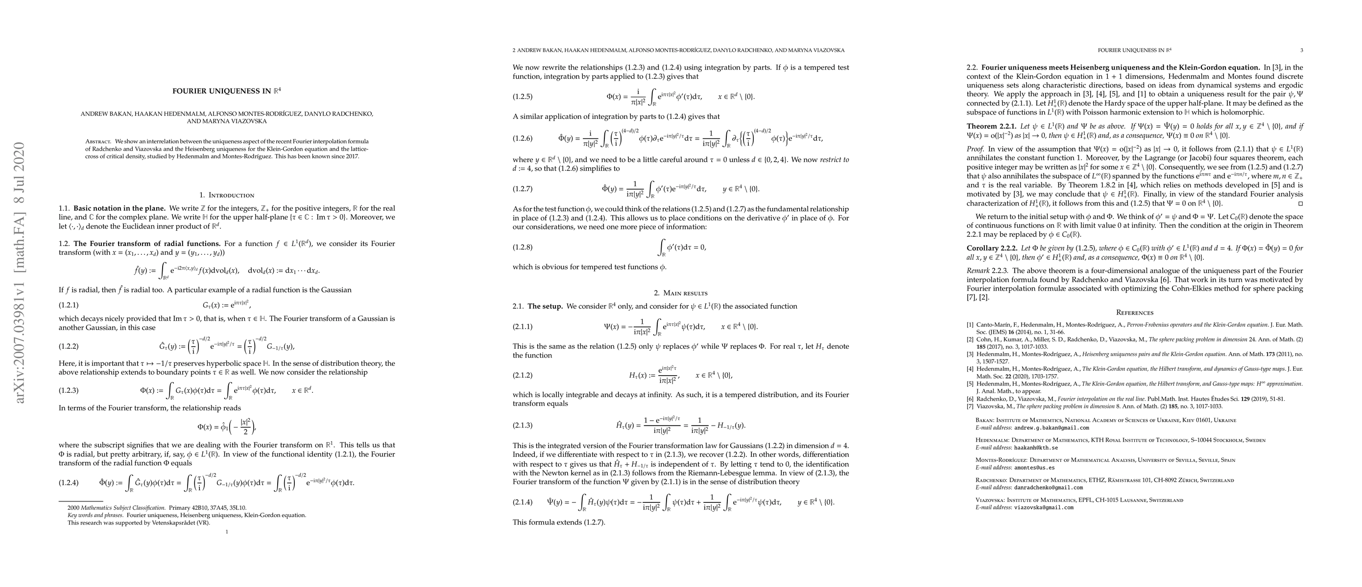 Summary: This paper explores the connection between the uniqueness properties of Radchenko and Viazovska's Fourier interpolation formula and the Heisenberg uniqueness principle for the Klein-Gordon equation, relating it to the lattice-cross of critical density. The findings build on established knowledge from 2017.
